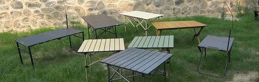 application scenarios. The material produced by our factory is the most common aluminum alloy. It is lightweight and rust-proof, making it very suitable for outdoor portable scenarios. Carbon steel material is strong and durable, with a high load-bearing capacity, making it ideal for situations where heavy objects need to be placed or used by multiple people. Solid wood or bamboo-wood materials naturally exude beauty and have a good texture, but they are relatively heavy. Regular maintenance is necessary during daily use. Additionally, composite boards offer high cost performance and maintain a certain degree of durability, making them suitable for various scenarios. You can choose different materials according to your own needs.